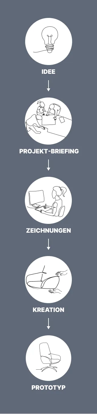 Dank unserer internen Prototypenwerkstatt können wir schnell physische Muster von Stühlen und Sofas anfertigen.